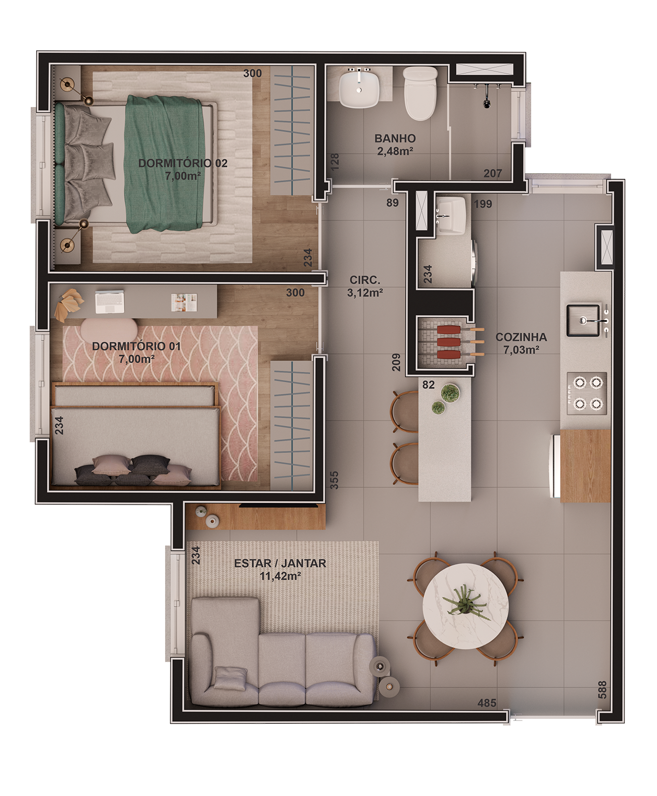 Apto Tipo 2 Dorm. / 45,32m² privativos