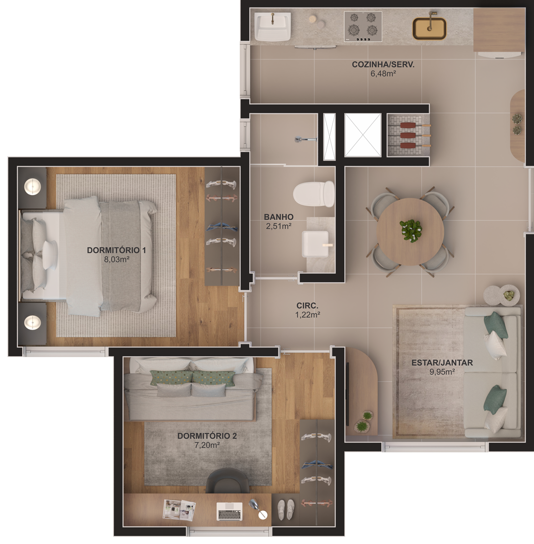 2 DORMITÓRIOS TIPO